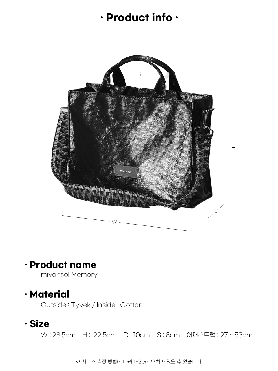가로 : 28.5cm, 높이 : 22.5cm, 폭 : 10cm, 스트랩 : 8cm, 어깨스트랩 : 27~53cm