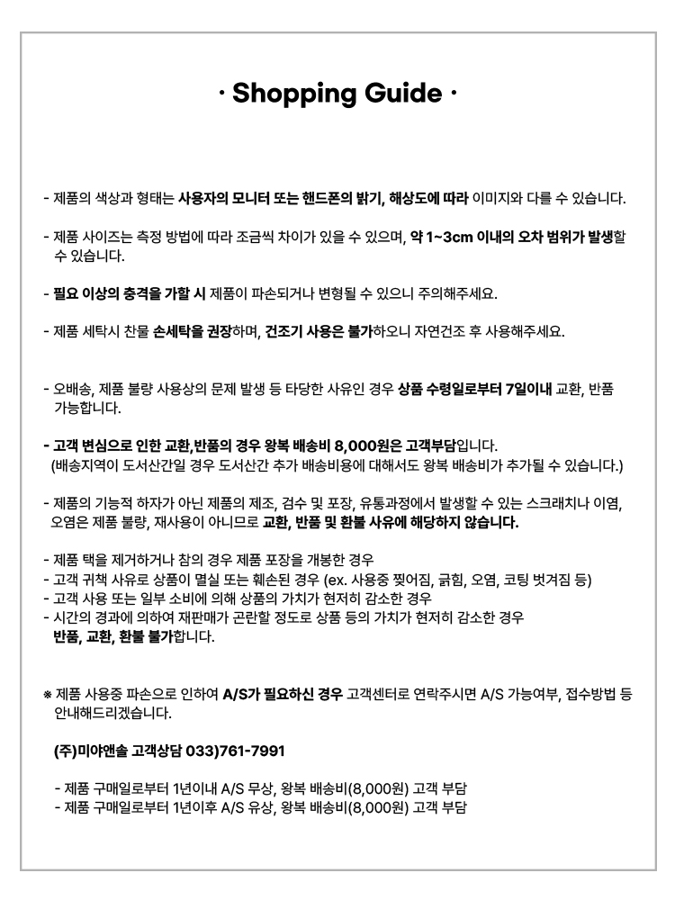 - 제품 측정 방법에 따라 사이즈 오차가 발생할 수 있습니다.