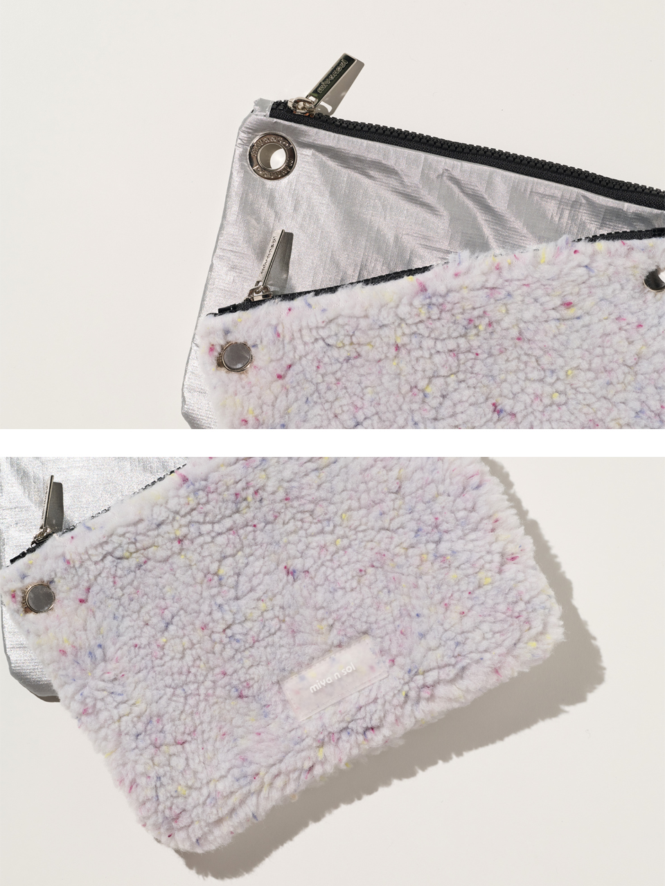 가로 : 23.5cm 세로 : 17cm 아일렛 내경 : 1.3cm (파우치1, 2 사이즈 동일)