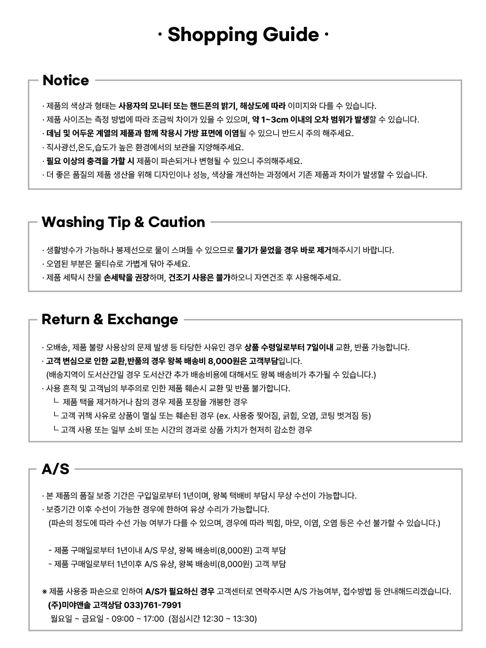 - 제품 측정 방법에 따라 사이즈 오차가 발생할 수 있습니다.