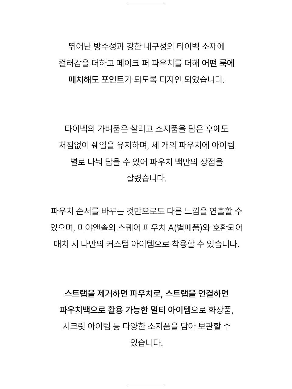 - 안감 및 스트랩 세탁 시 손세탁을 권장드립니다.